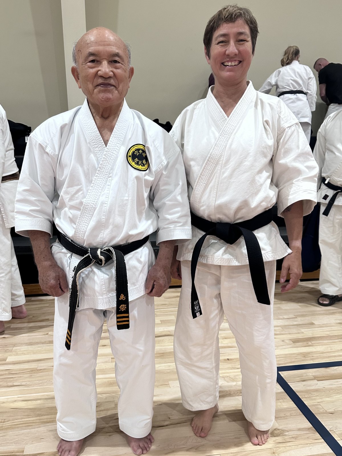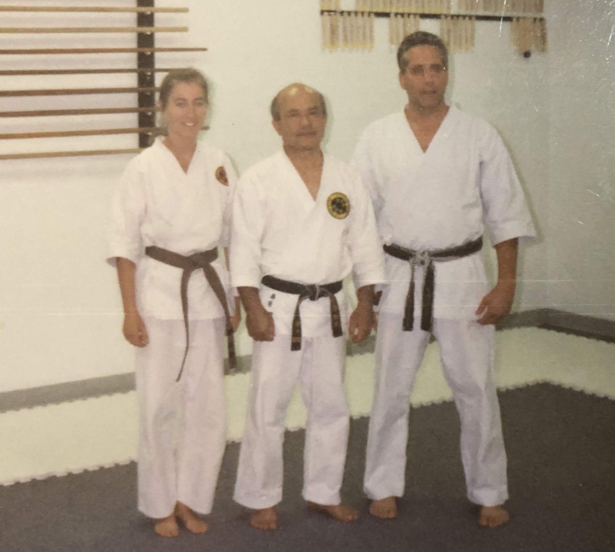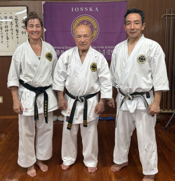Michelle MacGregor, Hanshi Zenpo and Kyoshi Zenshun Shimabukuro, Jagaru Dojo, Okinawa Japan